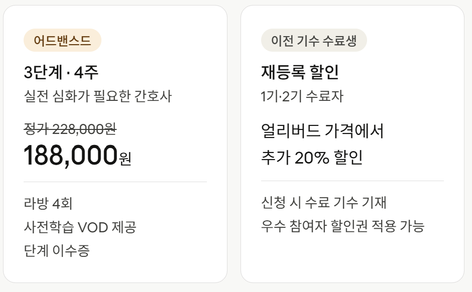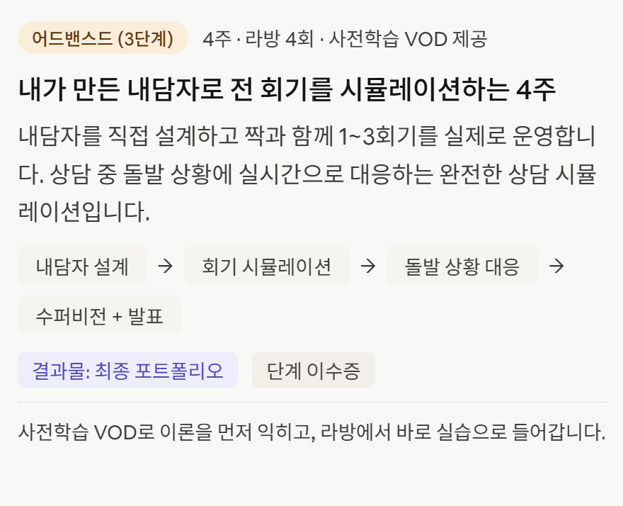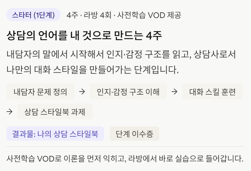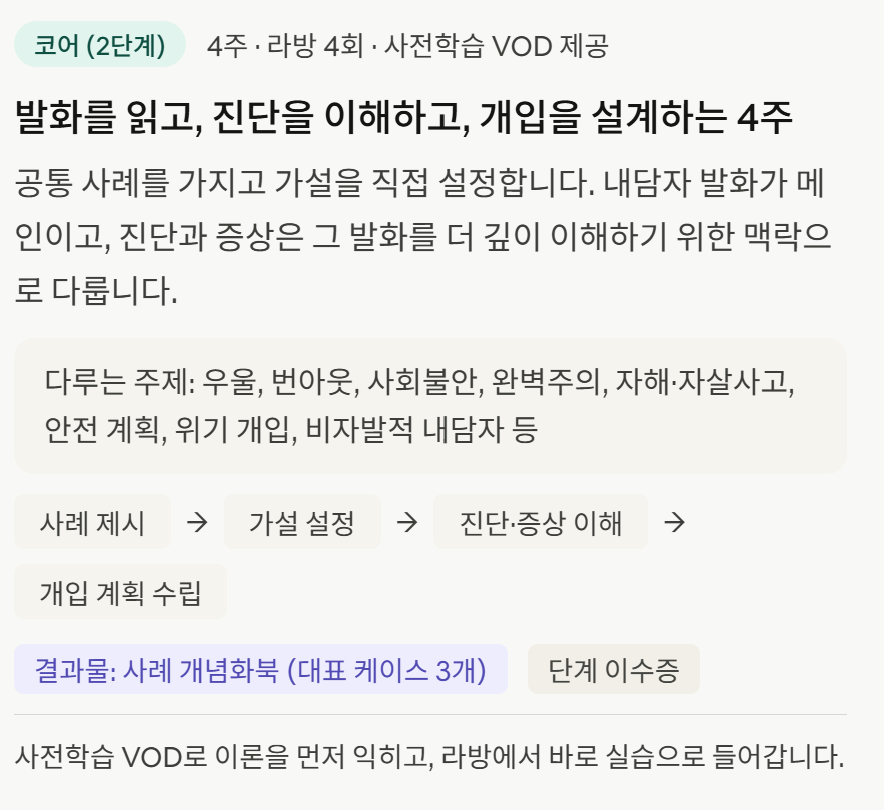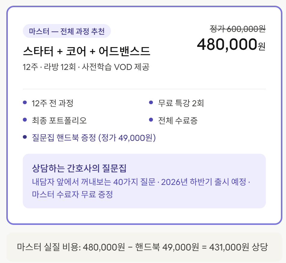 단계는 자유롭게 선택할 수 있습니다. 지금 필요한 단계부터 시작하고 다음 단계로 이어가도 됩니다. 전체를 함께 신청하면 마스터 가격이 적용됩니다.