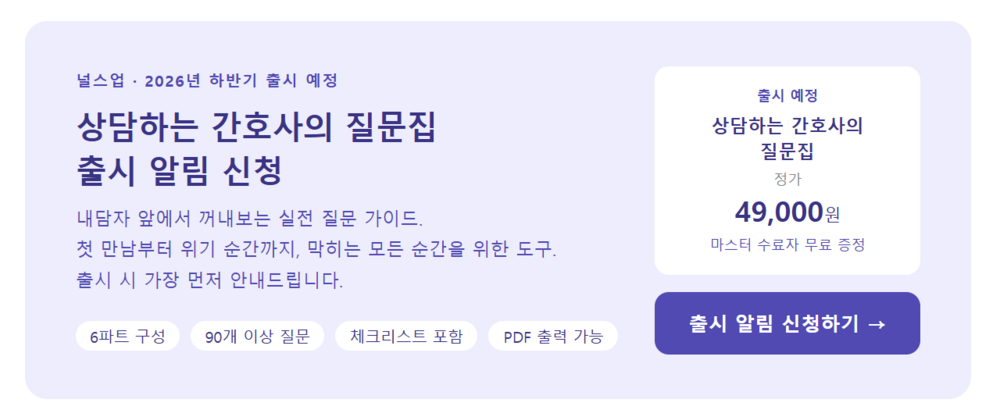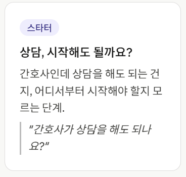 상담하는 간호사 부트캠프 수료 후 이웃집블루에서 인증 받고 실제로 활동 중인 '상담 전문 간호사'가 직접 이야기 합니다. 어떻게 시작했는지, 어떤 내담자를 만났는지. 강의가 아니라 실제 사례를 기반으로 한 이야기입니다.