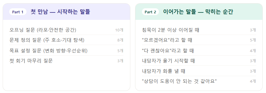 내담자 앞에서 꺼내보는 실전 질문 가이드.