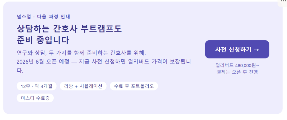 얼리버드 사전 신청ㅣ상담하는 간호사 부트캠프