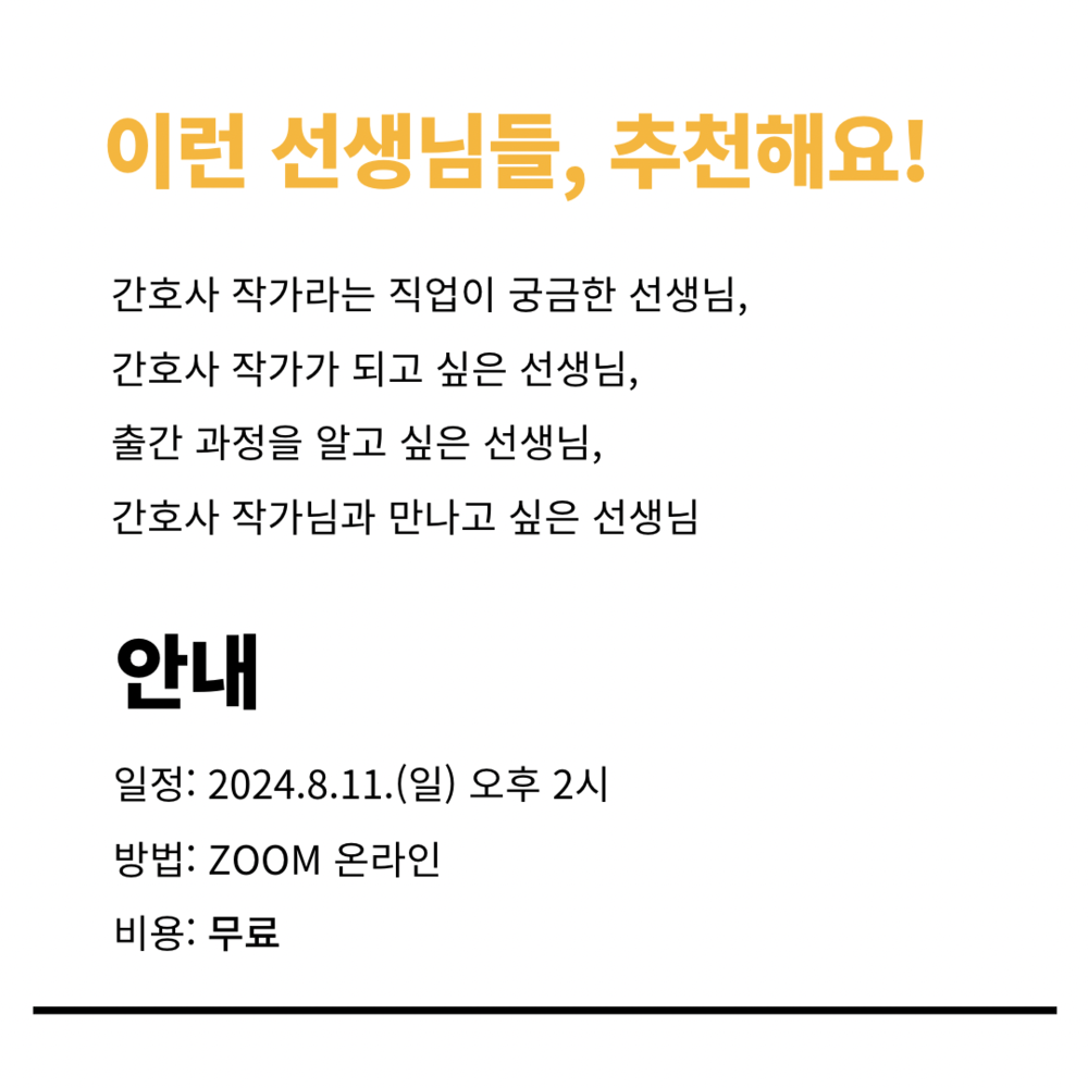 ♥︎마감!!! 사노니 간호사 작가님 무료 특강♥︎ "간호사 작가가 되려면?"